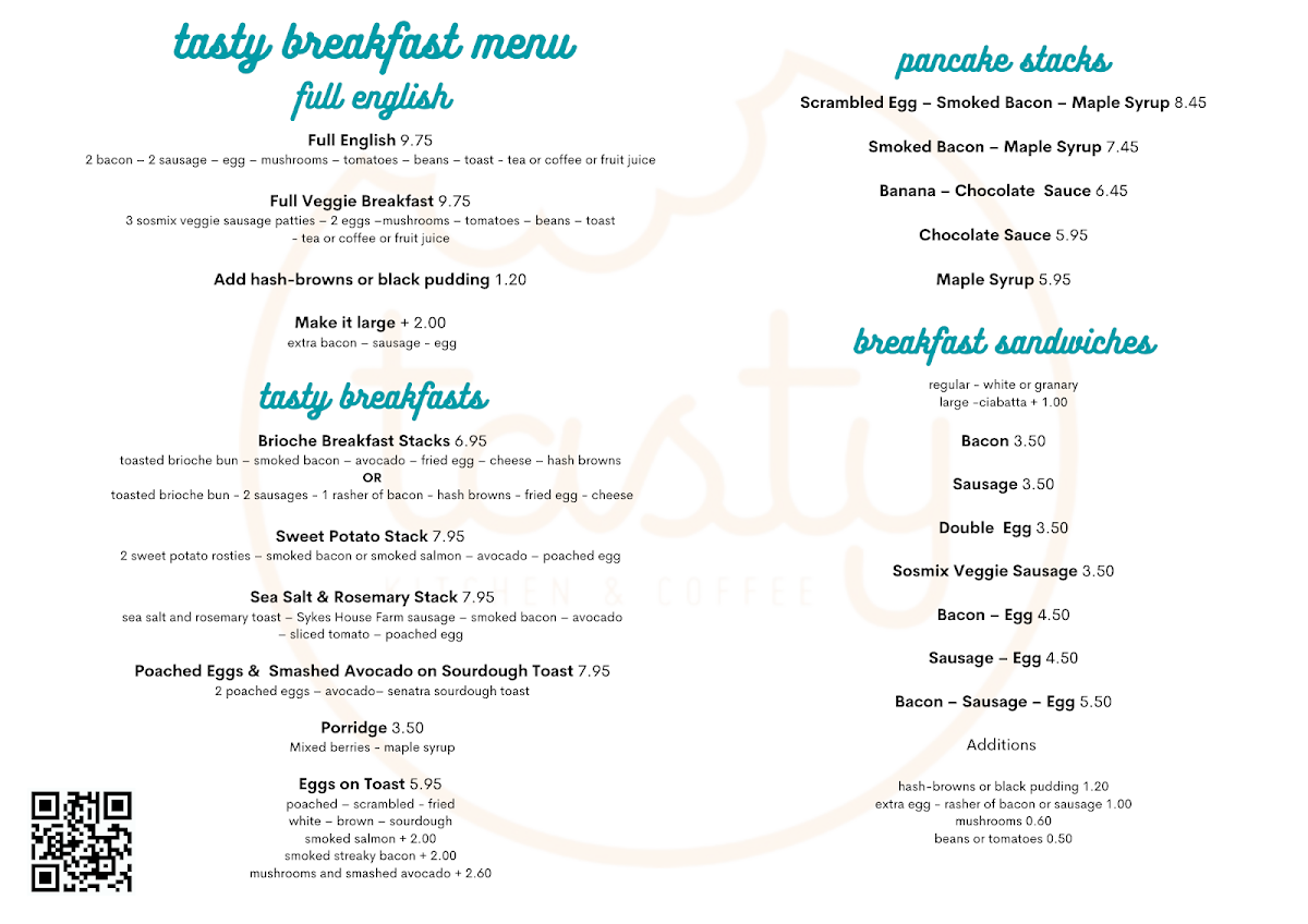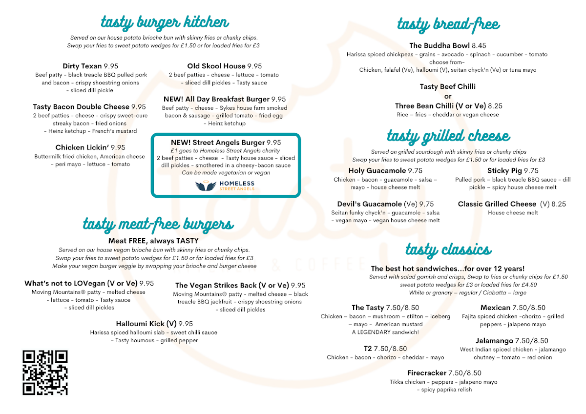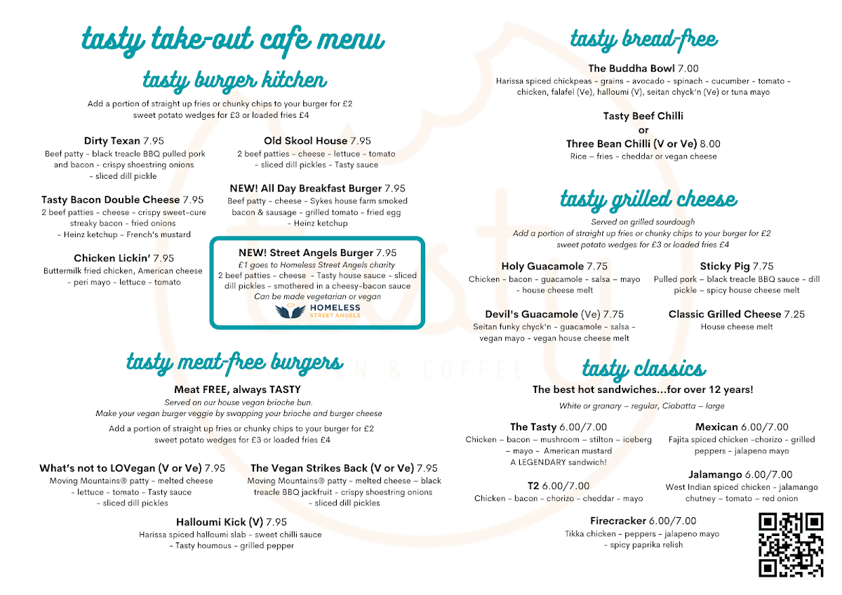 The menu at Tasty Kitchen & Coffee offers a delightful balance of hearty breakfasts, inventive twists on classic comfort food, and expertly crafted coffee drinks. The Full Veggie Breakfast stands out as a vibrant, satisfying option, packed with fresh ingredients that make it a perfect start to the day. For those seeking a more indulgent twist, the New All Day Breakfast Burger cleverly combines breakfast favorites into a handheld delight, while the Slider provides a smaller, yet equally flavorful alternative. Savory cravings are well catered for with the Chili Cheese, a rich and spicy treat that pairs beautifully with the lighter offerings. On the beverage side, the coffee selection is impressive, from a robust Espresso to the silky Cappuccino, with the Cortado offering a smooth, perfectly balanced option for espresso lovers. Each item feels thoughtfully prepared, showcasing a menu that is both approachable and exciting, with options that appeal to casual diners and coffee aficionados alike. Whether enjoying a leisurely brunch or a quick snack, the combination of innovative breakfast dishes and high-quality coffee ensures a memorable visit every time.